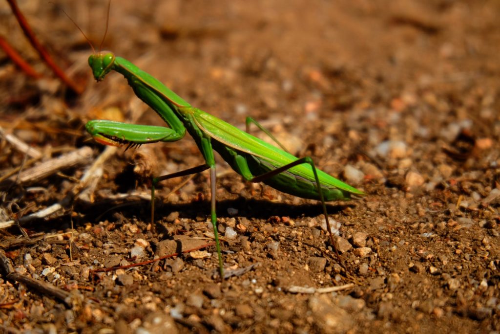 Ein Prachtexemplar von „Gottesanbeterin“ (Mantis religiosa) kreuzt unseren Pfad.