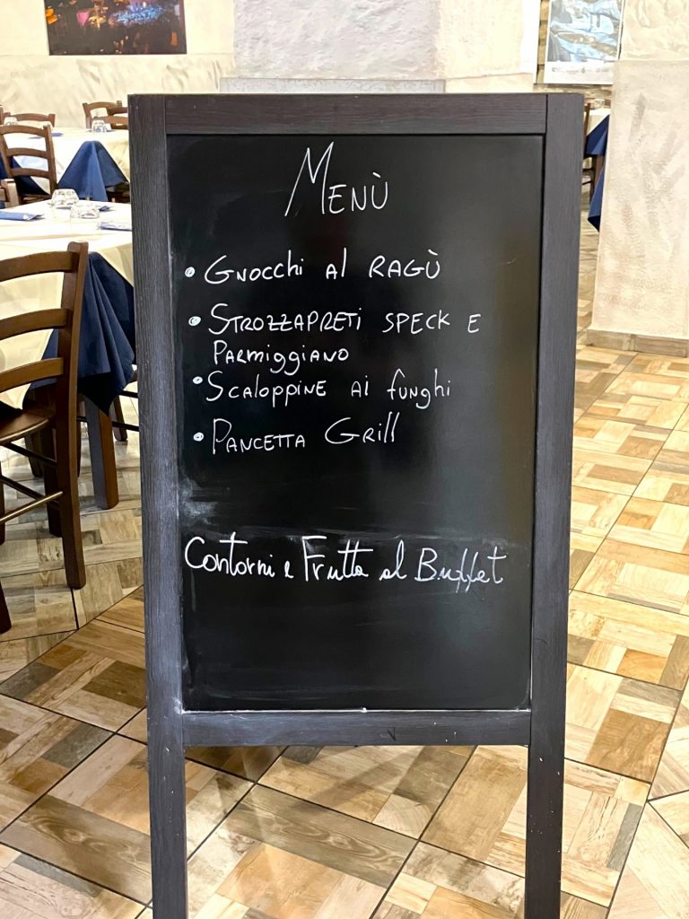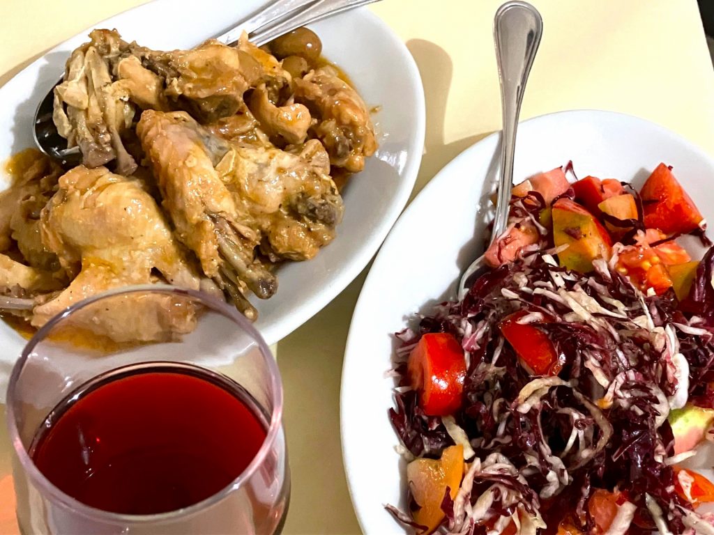 Da es immer mal wieder zu regnen beginnt, sind wir froh ins Bauernrestaurant gehen zu können. Hier werden neben Pasta und Salat auch das wohl zarteste in Weißwein zubereitete Hühnchen aus eigener Zucht zubereitet.