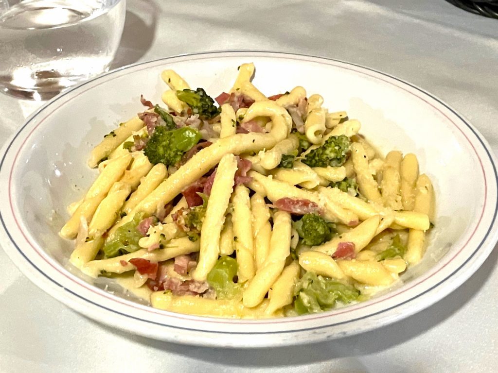 Ohrennudeln mit Brokkoli und Peperoni sowie Schweineschnitzel mit warmem Apfelmus werden als Tagesmenü serviert. So werden wir die Weiterfahrt in den Hafen von Livorno wohl prima schaffen.