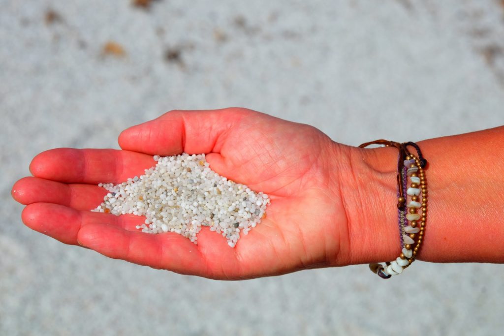 Der so genannte Reiskornstrand „Is Arutas“ von Mari Ermi ist ein wahres Schmuckstück von Strand. Er besteht aus unzählbaren funkelnden Quartzsteinchen, die Reiskörnern ähneln. Wir haben Lust auf einen Spaziergang zur kleinen Holzbrücke an der Lagune, die sich schon in Chile befindet … 😉