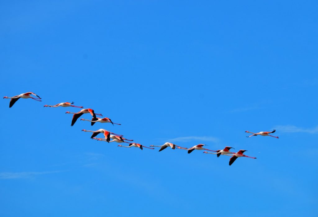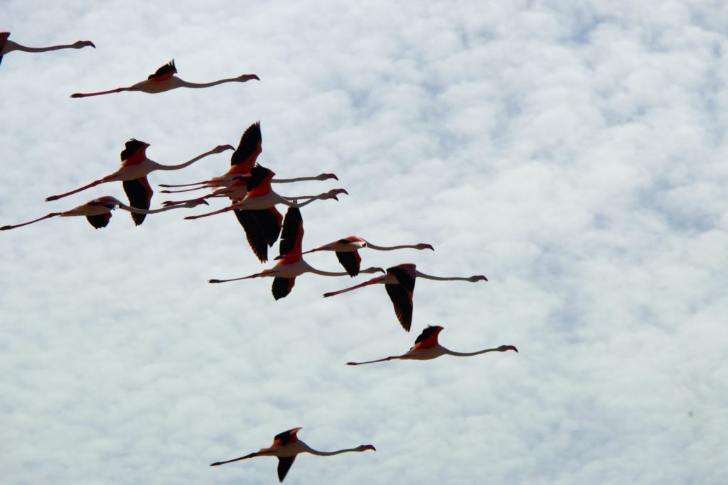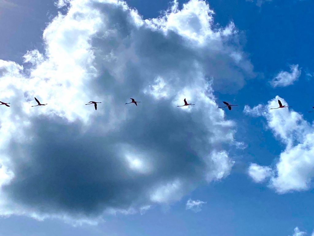 Und dann haben wir echt Glück, da sich ein paar Flamingos genau über uns zu einem Ausflug in die Lüfte begeben haben.