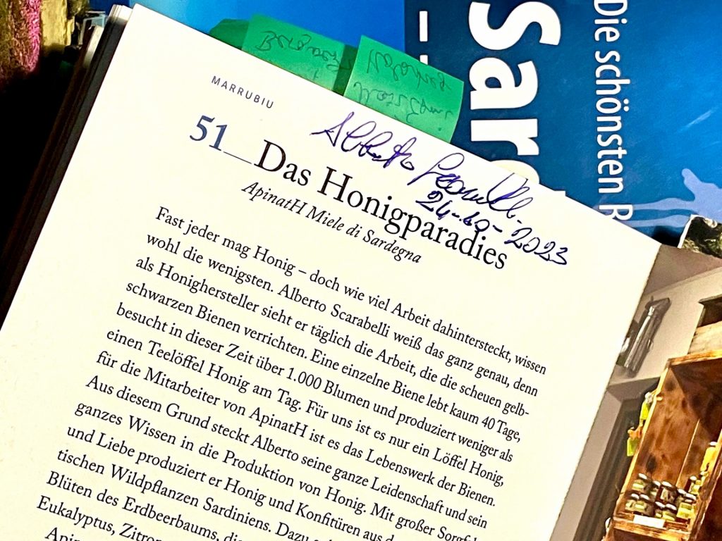 Wir rollen zum Auto und dann gemeinsam weiter. Was ist das heute bloß für eine Tour?! Denn jetzt besuchen wir in der Nähe von Marrubiu gelegen, das Honigparadies von „Alberto Scarabelli“. Er besteht darauf, dass wir die unterschiedlichen Honige verkosten, denn wie wollen wir denn sonst wissen, was wir tatsächlich mögen. Spätestens jetzt wünschen wir uns eine Couch und eine Flasche Grappa …
