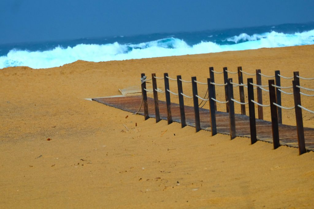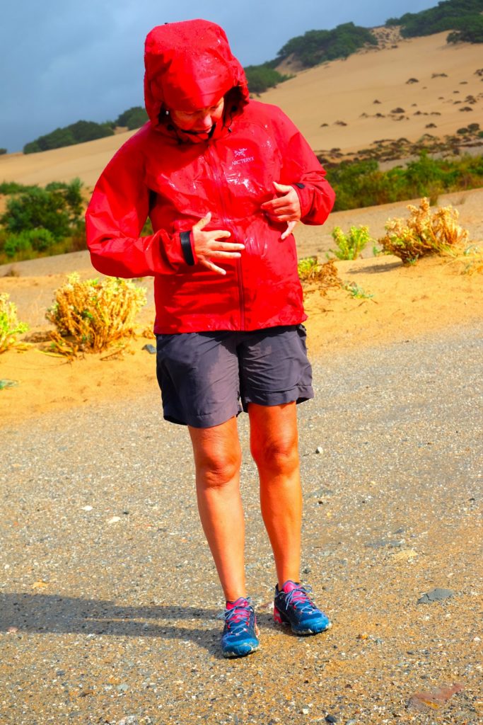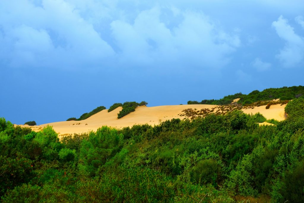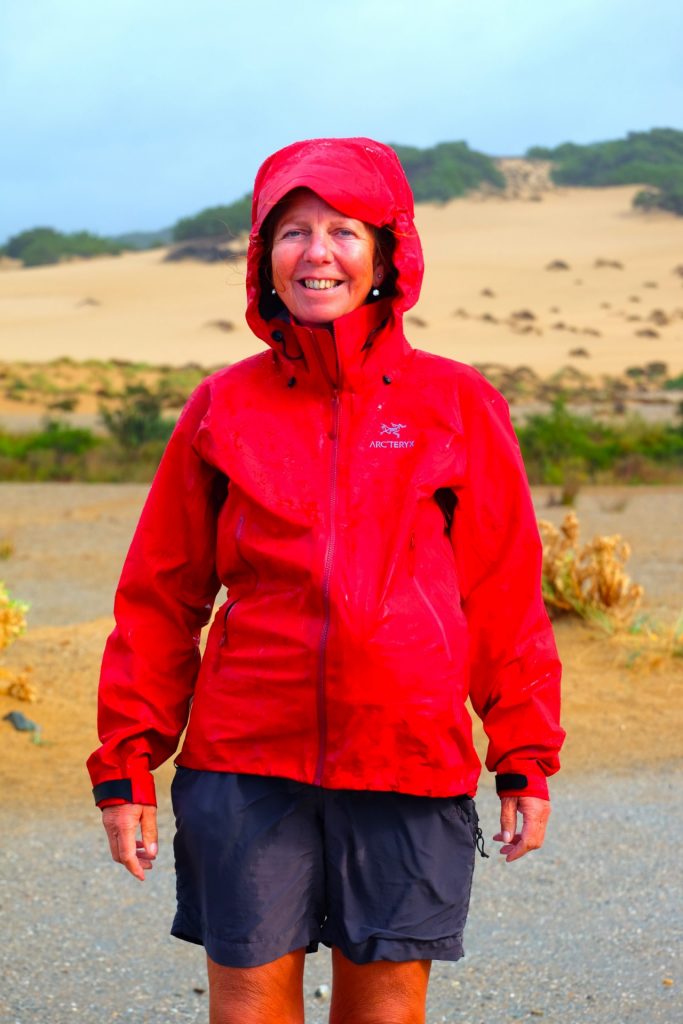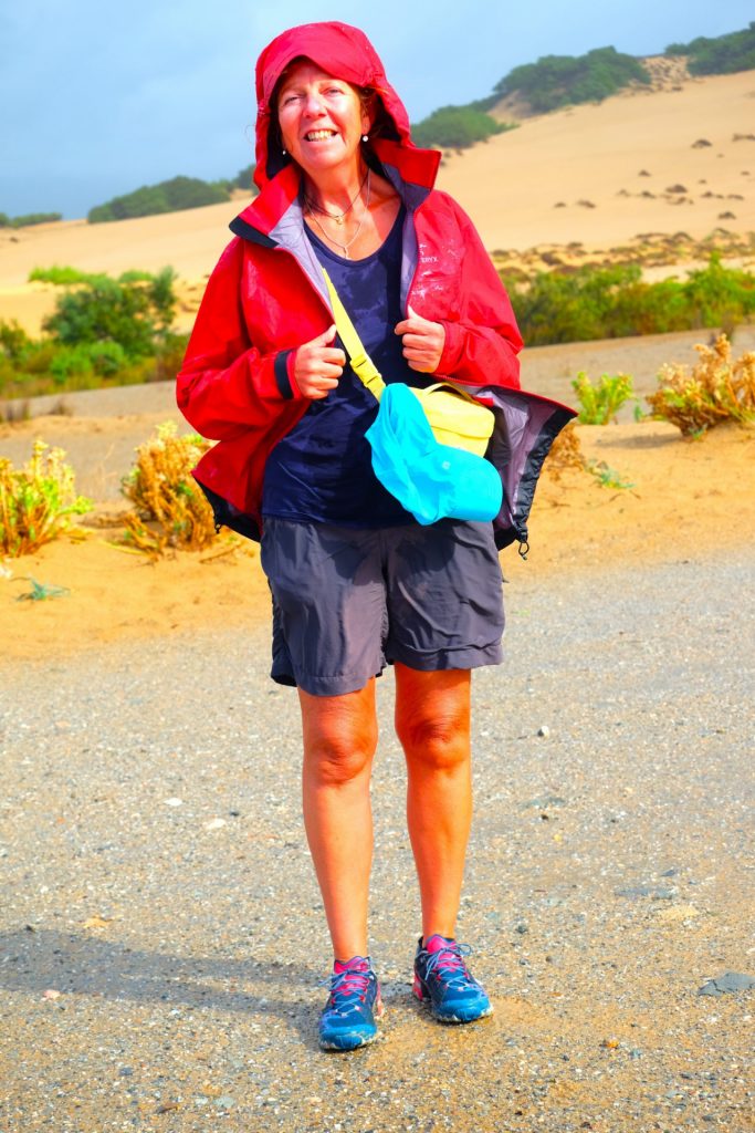Schon während unseres Spaziergangs durch die nicht enden wollende riesige – wieder einmal an Afrika erinnernde – Dünenlandschaft der Costa Verde verdichten und verdunkeln sich die Wolken. Dann beginnt es wie aus Kübeln zu schütten. Mehr schlecht als recht finden wir an einem kleinen Strandkiosk Unterschlupf.