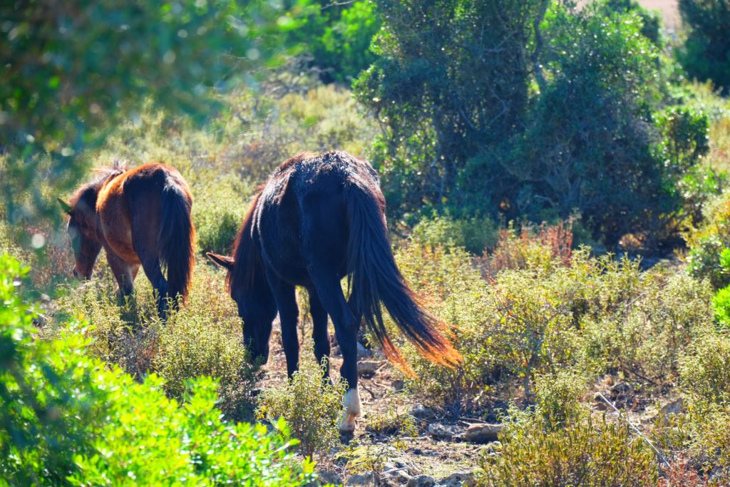 Jetzt mal etwas anderes. Es geht auf eine 600 Meter hohe Ebene hinauf. Das „Altopiano della Giara“ erwartet uns. Und mit ihm die letzten Wildpferde Europas. Wir fragen einen der Ranger, ob wir hier nächtigen dürfen. „Sì, è possibile. Non c’è problema.“