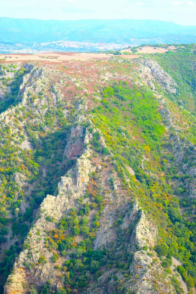 Blick von der Hochebene ins Tal auf das Örtchen Setzu. In Barumini versorgen wir uns bei „La Bottega“ mit frischen Lebensmitteln und einer kleinen „Pizza To Go“.