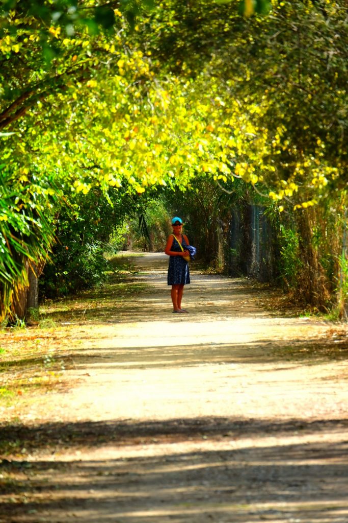 Der Weg zum Spiaggia führt idyllisch durch einen „Baumtunnel“ an einem Fluss entlang.