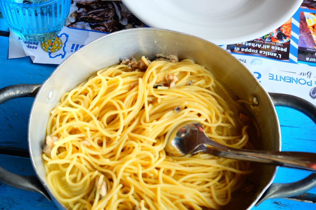 Stattdessen fahren wir zur „Oyster Bar Chiosco di Ponente“, die sich in einer versteckten Ecke des Hafens von Tortoli befindet. Ein Ristorante, welches zu einer Kooperative gehört, die über eine eigene Fisch- und Meeresfrüchtezucht verfügt. Spaghetti mit Austern sowie eine Auswahl an Frutti di Mare finden kurze Zeit später ihren Bestimmungsort …