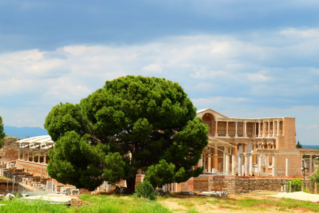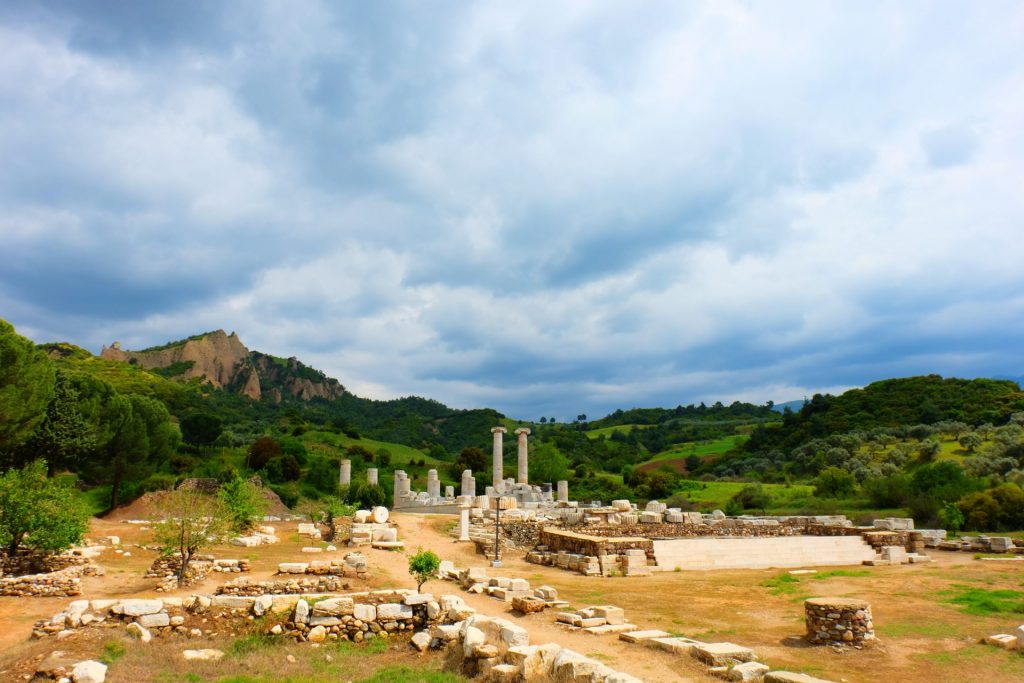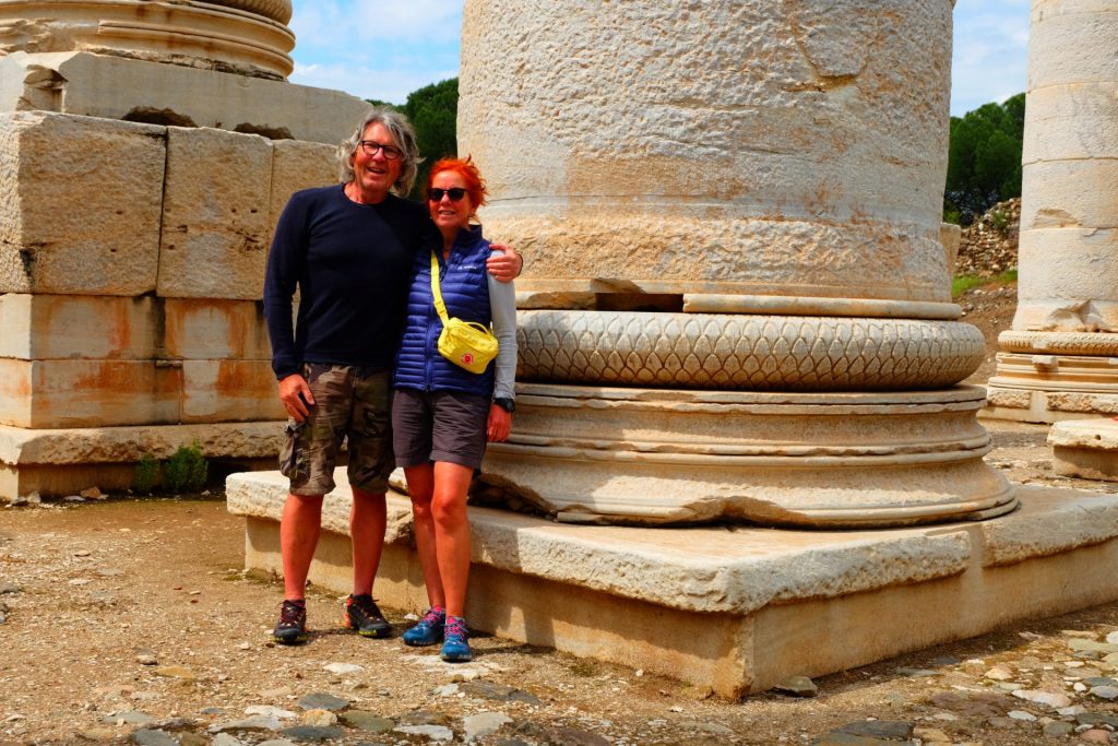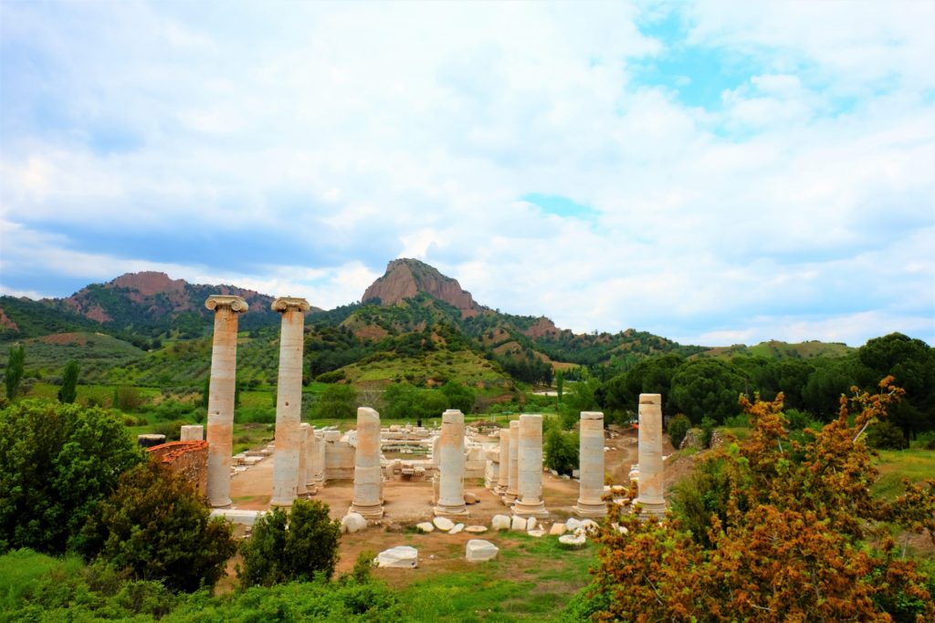 Es folgt eine Spritztour in die nähere Umgebung. Kurz darauf treffen wir auf einen Imker, der seine Bienenwaben überprüft. Mit gebührendem Sicherheitsabstand schauen wir ihm etwas bei seiner Arbeit zu. Weiter geht’s erneut zur Ausgrabungsstätte von Sardes mit Gymnasium und dem wunderbar in die Landschaft eingebetteten Artemis-Tempel.
