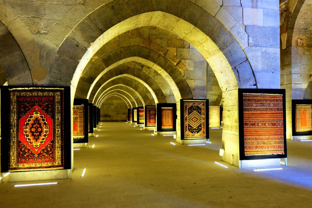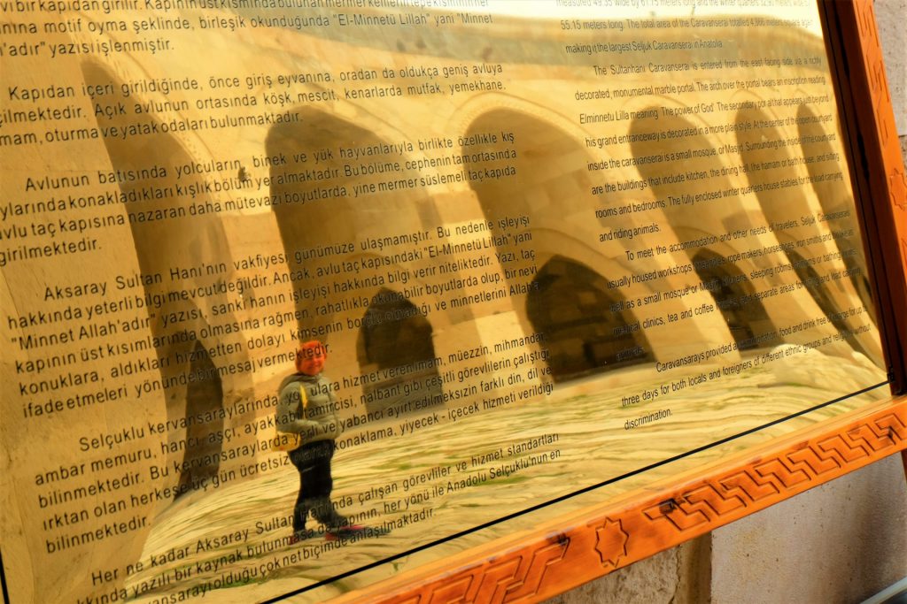 Die Nacht war „arschkalt“, so um die 3°C. Wir brechen schnell auf, da vor uns gute 400 Kilometer Strecke liegen bis wir Kappadokien erreichen. Im Ort Sultanhani schauen wir uns die Karavanserei an. Von außen beige vor grauem Himmel, doch innen bunt und stimmungsvoll vor lauter bunten Teppichen.