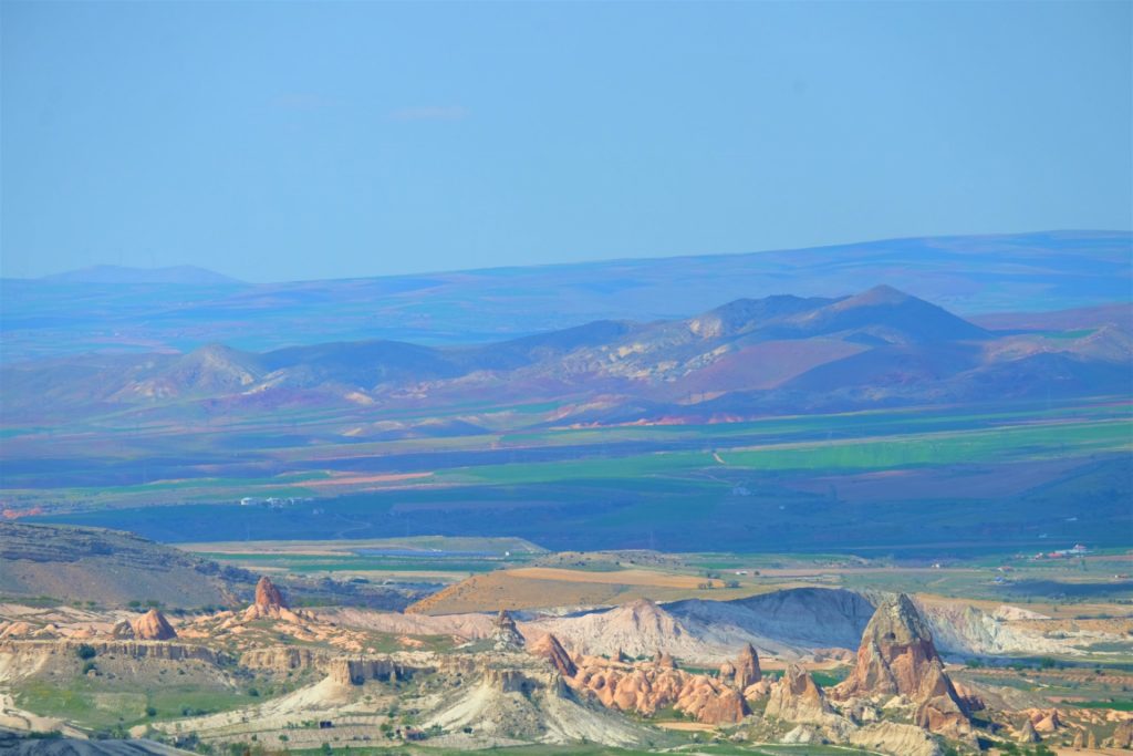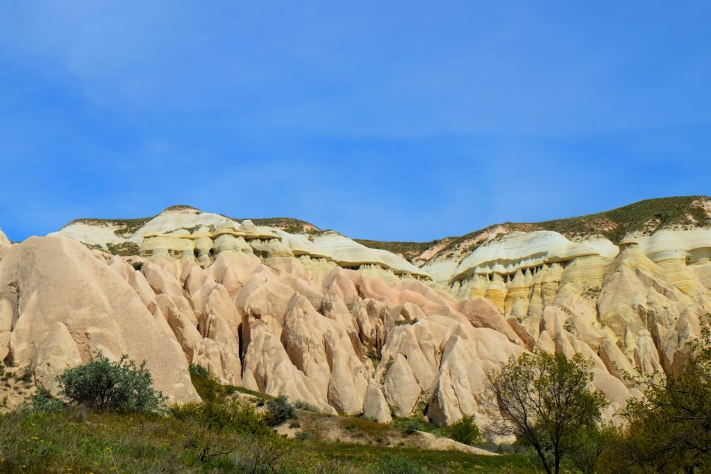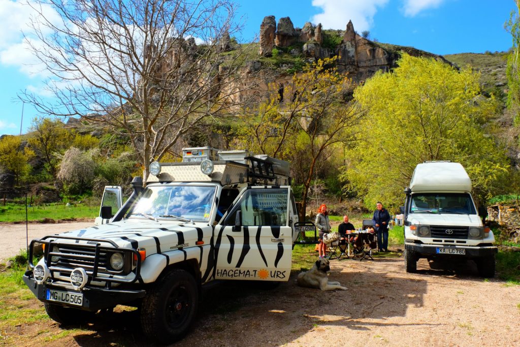Gegen 19 Uhr erreichen wir „Kaya Camping“. Unser Stellplatz hat freien Blick auf das vor uns liegende Tal mit seinen interessanten Felsformationen und liegt 1.219 Meter über Null.