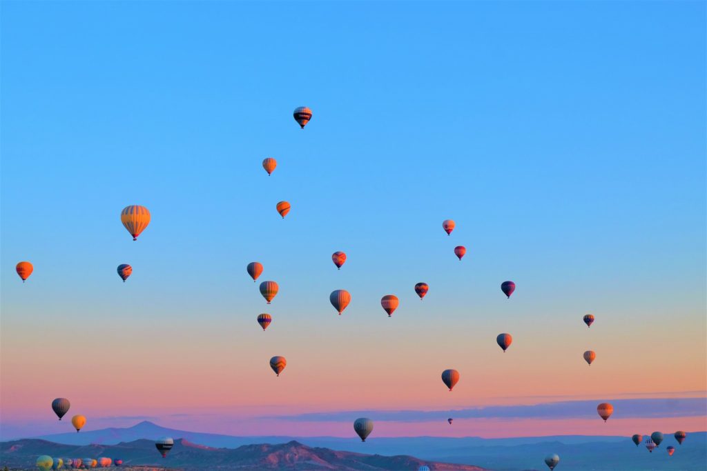 Um 6 Uhr morgens werden wir wach und schauen aus dem Wagen. Über einhundert Heißluftballons sind aufgestiegen und fahren über das Tal. Und das jeden und jeden Morgen!